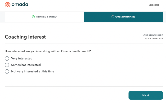 We also reviewed how we asked about a person’s interest in working with an Omada coach and saw an opportunity to better explain what coaching is and how it helps people achieve their health goals.