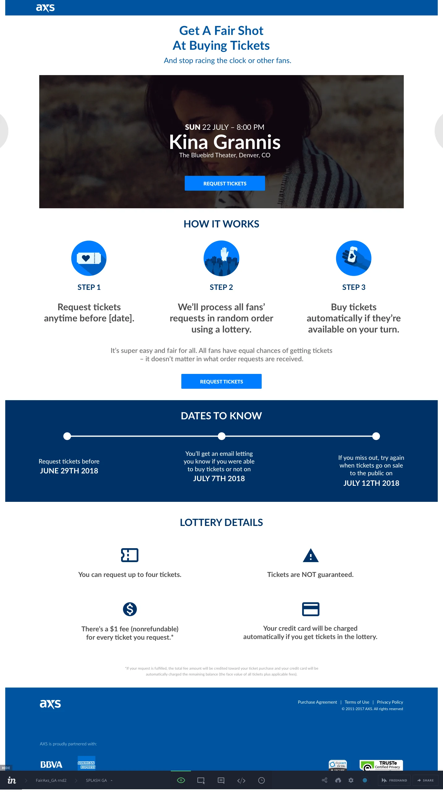 Page explaining Fair AXS, a fair and stress-free way to get tickets for popular events:
