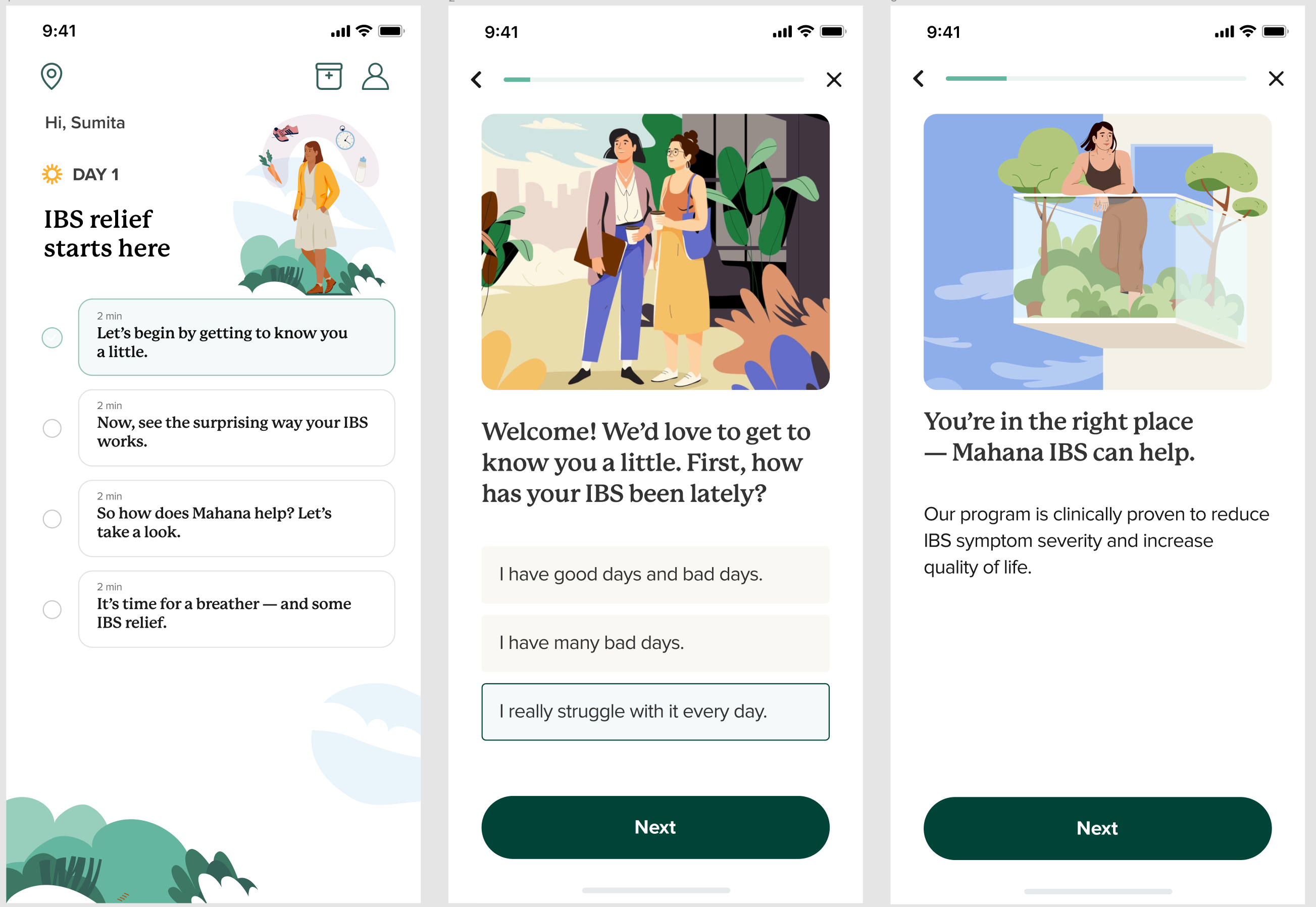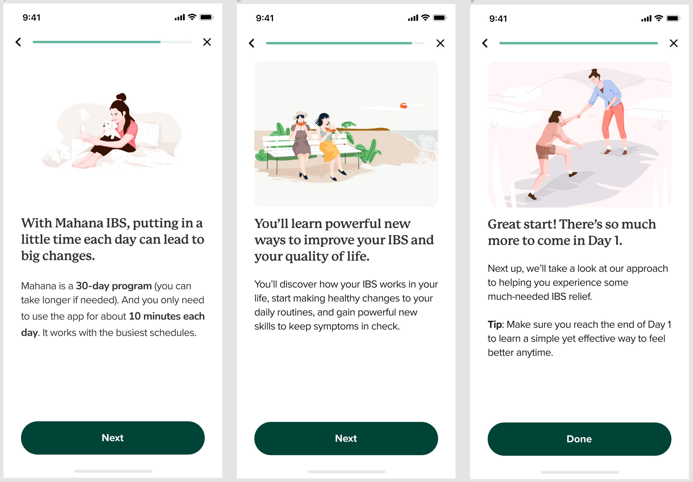First day of content in the Mahana app (see the case study on the home screen for a look at my process for this project):